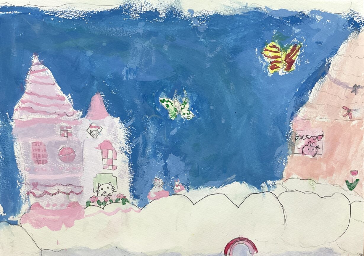 1年生 Kさんの作品「ねことうさぎのおしろ」