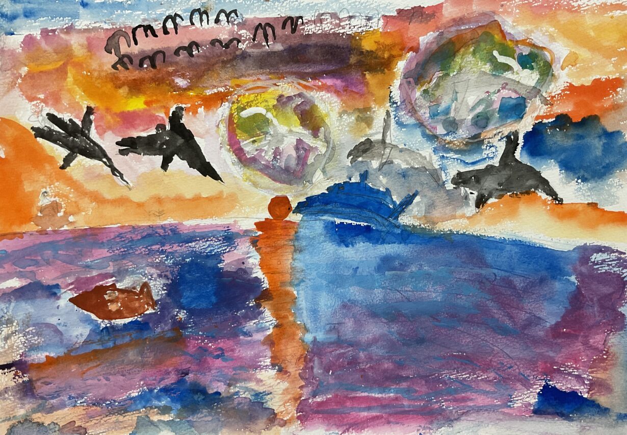 2年生 Nくんの作品 「海の上のシャボン玉」