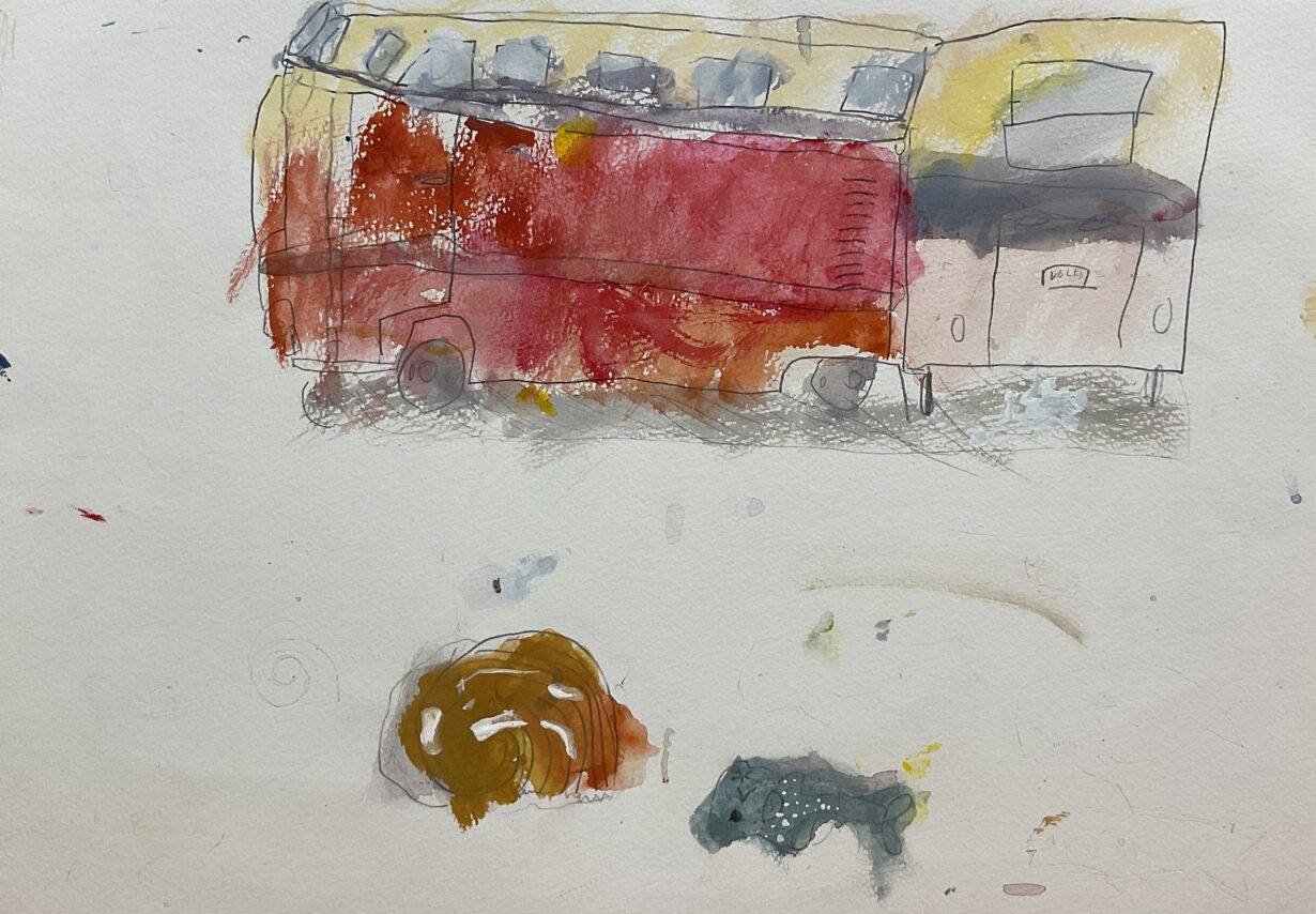 2年生 Tくんの作品 「バスと貝とジンベエザメ」